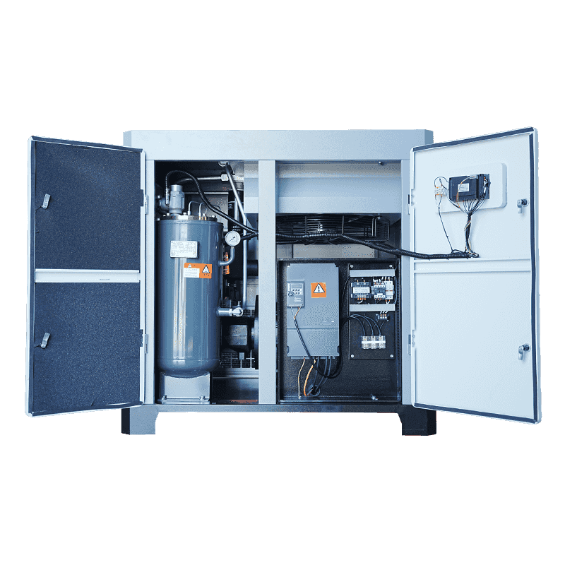 Het compressiesysteem met dubbele schroef dat in het 50 pk-model wordt gebruikt, is ontworpen om een continue luchtstroom te bieden met minimale interne lekkage en een consistente drukuitvoer. Dit structurele voordeel helpt de energiestabiliteit te behouden tijdens langdurig gebruik. Vergeleken met traditionele zuiger- of meertrapsunits zorgt het eentraps-dubbelschroefsformaat ervoor dat de compressor de vereiste luchtstroom efficiënter kan leveren. Het stabiele interne compressieproces helpt schommelingen te verminderen die het verbruik kunnen verhogen. Gedurende langere perioden zorgt deze stabiliteit ervoor dat de compressor zijn taken uitvoert zonder onnodige vermogenstoename, waardoor een voorspelbaar en gecontroleerd energieverbruik in veeleisende omgevingen wordt ondersteund.